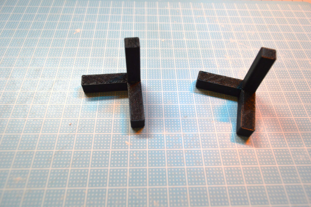 ↑3dプリンターで印刷した造形物2点を接合
