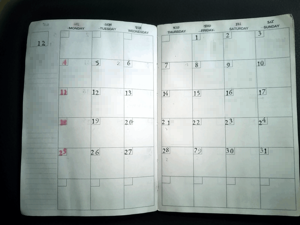 赤/黒のゴム印で曜日・日付を入れると視認性も高い