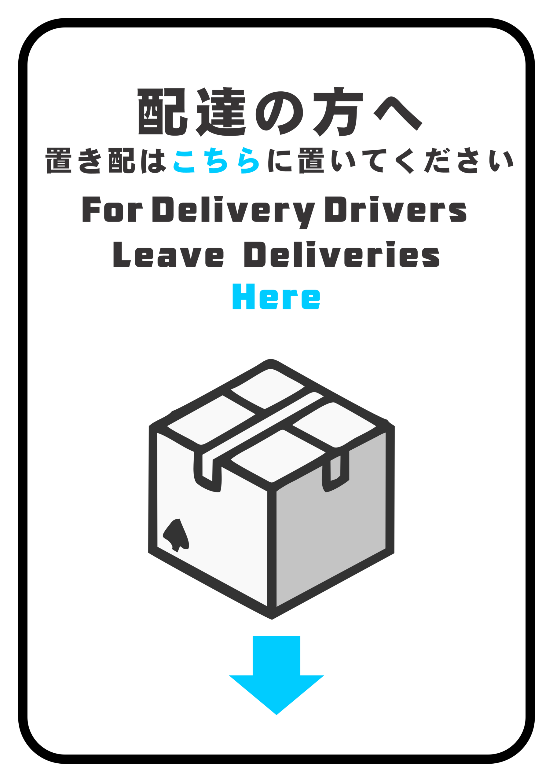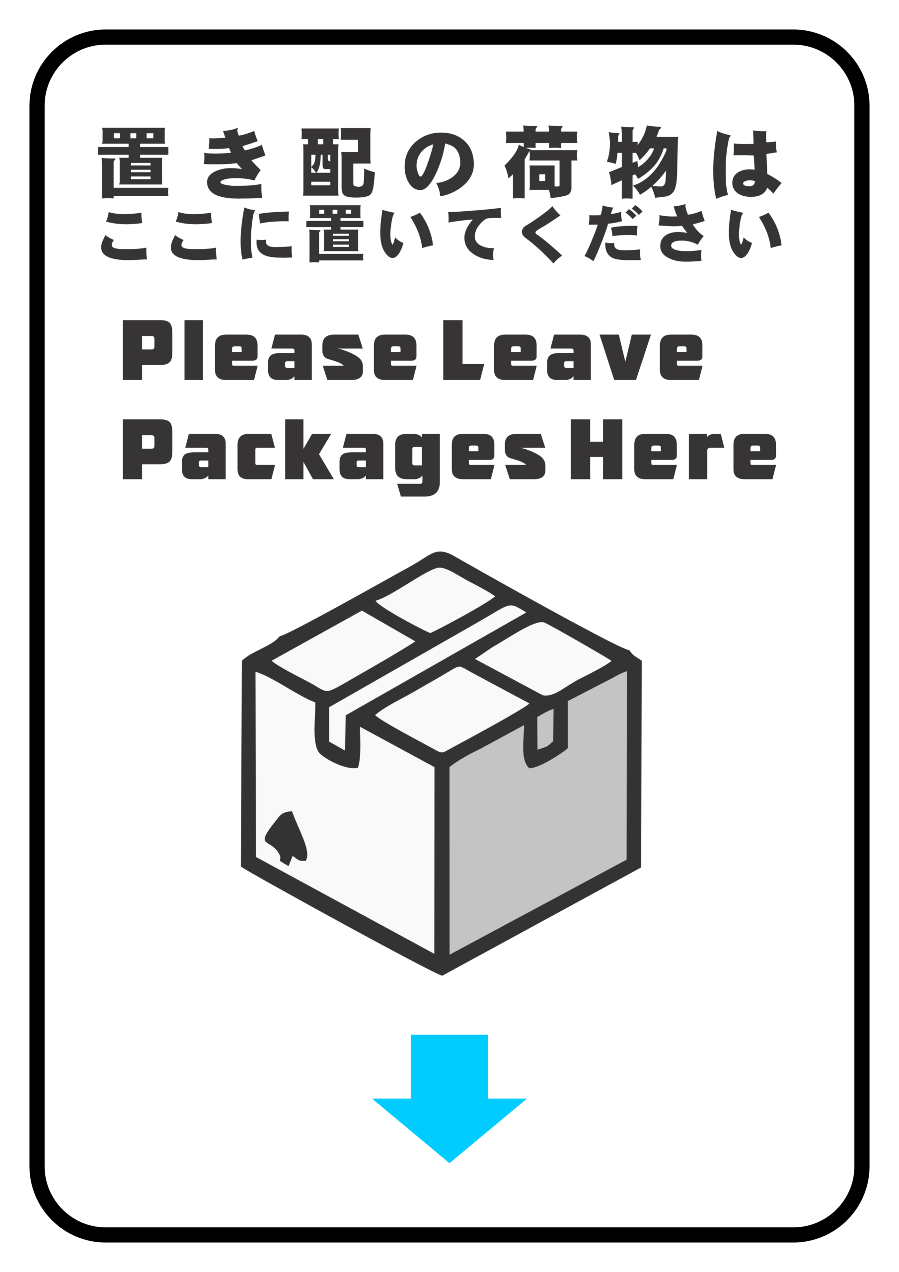 置き配はここに置いて下さい・配達の方へ・荷物はここに置いて下さい(A3タテ)