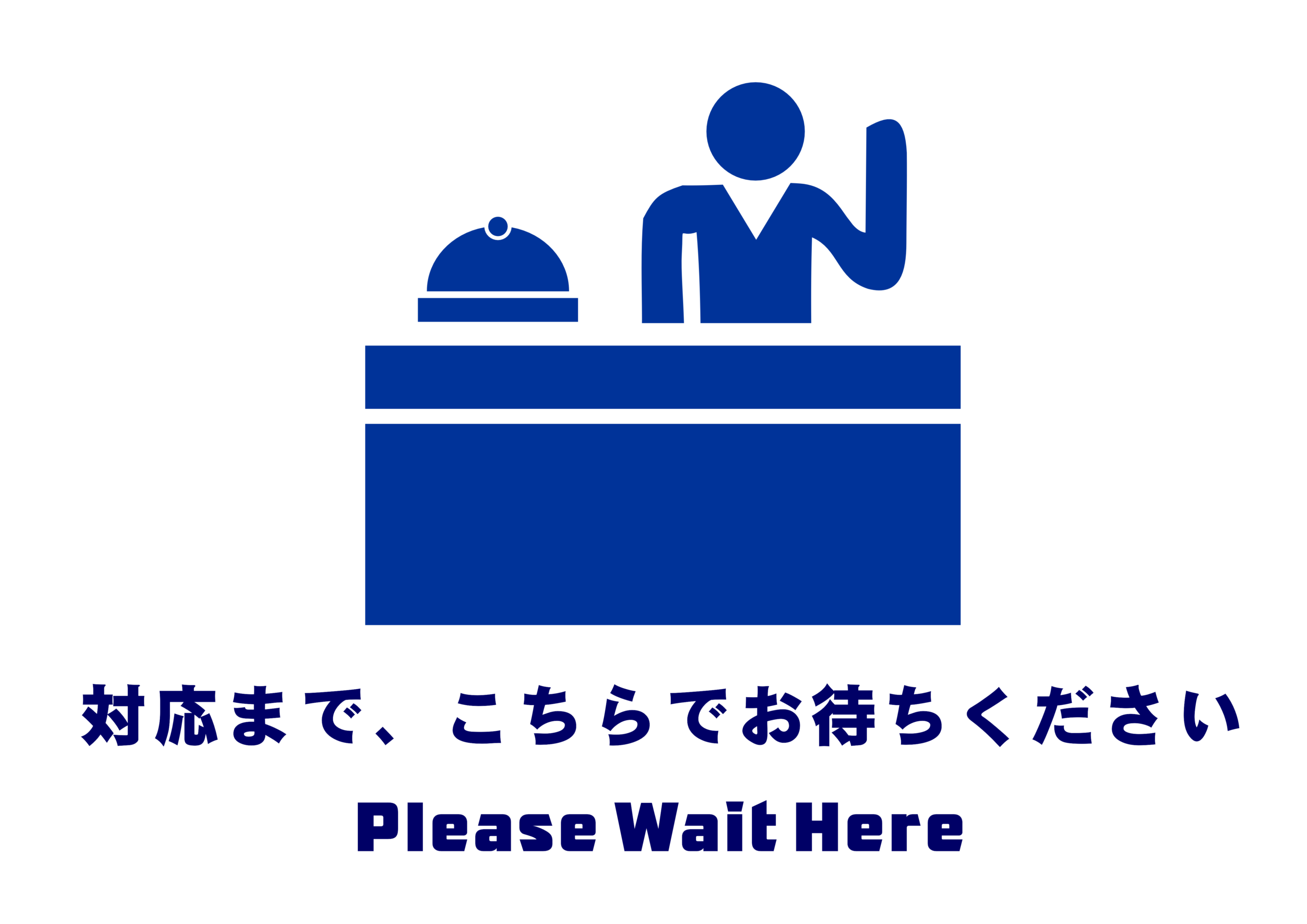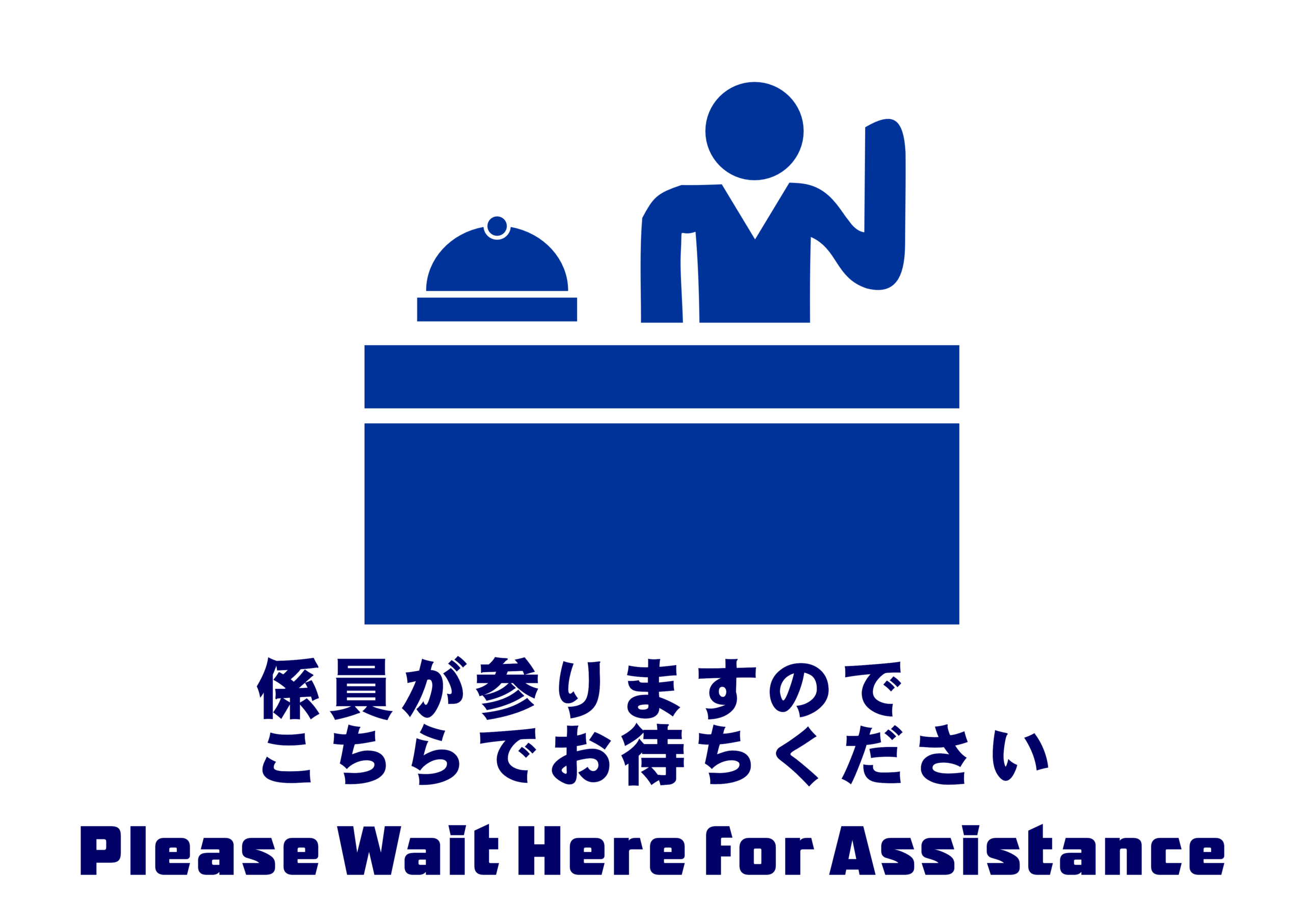 係員が参りますので、こちらでお待ちください:Please Wait Here for Assistance 案内PDF