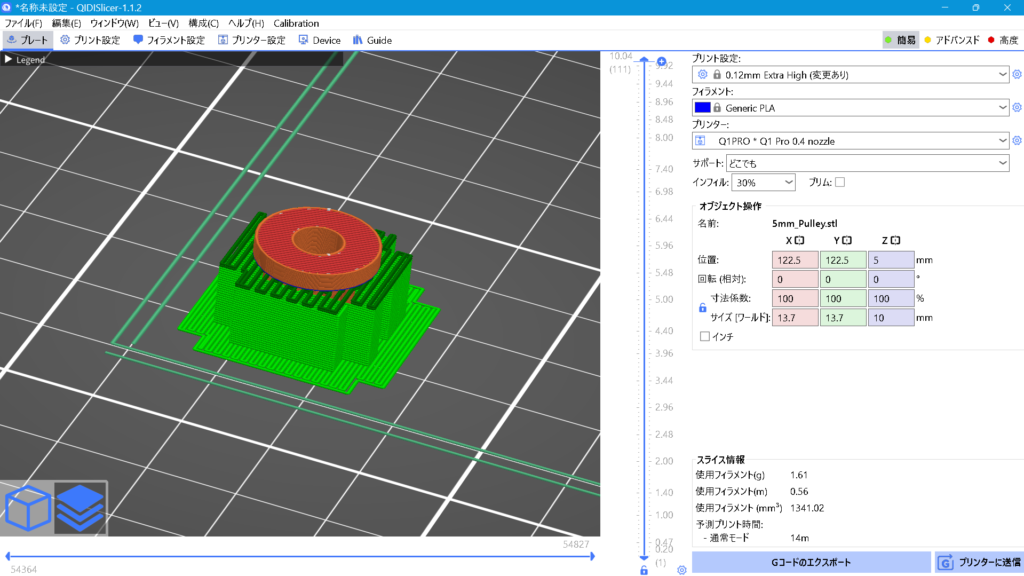 このモデルをサイズ100%、インフィル30%で印刷した時にかかるコスト